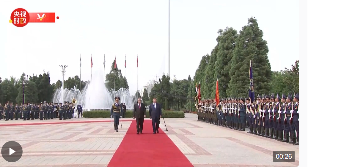 當?shù)貢r間7月5日下午,習近平主席在拉赫蒙總統(tǒng)陪同下檢閱儀仗隊,用塔語問候:“大家好!”儀仗隊員用塔語齊聲回應:“您好,主席閣下!”MwE安康新聞網(wǎng)