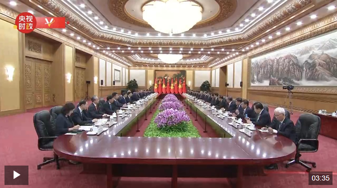 習(xí)近平指出,歡迎蘇林總書記、國家主席同志對中國進(jìn)行國事訪問,再次祝賀你當(dāng)選越共中央總書記。你就任總書記后首訪就來到中國,充分體現(xiàn)了你對兩黨兩國關(guān)系的高度重視,也體現(xiàn)了中越關(guān)系的高水平和戰(zhàn)略性。我愿同你建立良好工作關(guān)系和個人友誼,共同引領(lǐng)中越命運(yùn)共同體建設(shè)走深走實。