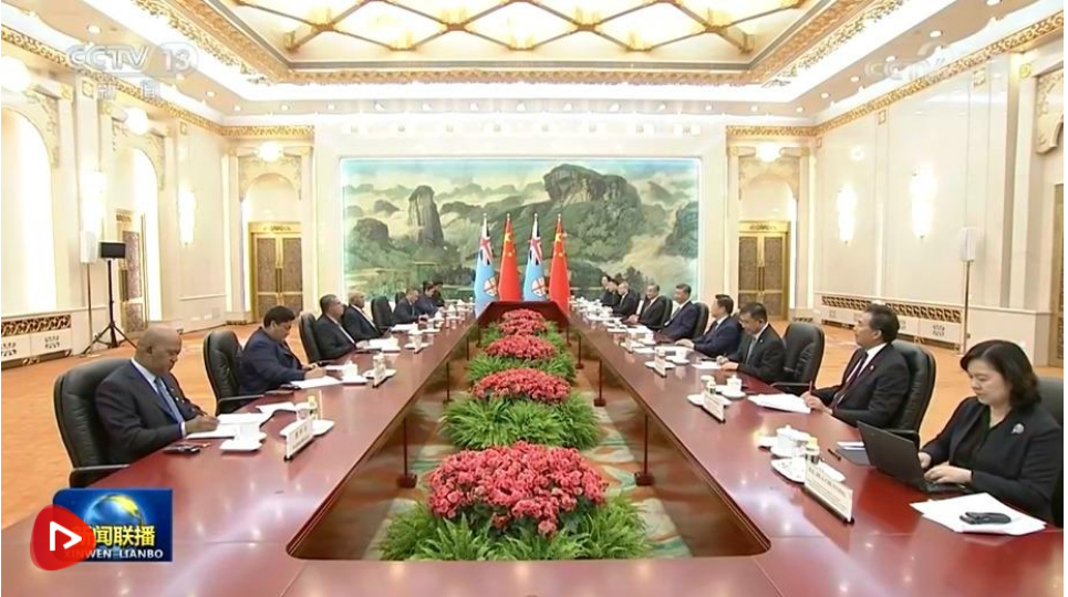 8月20日下午,國家主席習(xí)近平在北京人民大會(huì)堂會(huì)見來華正式訪問的斐濟(jì)總理蘭布卡。