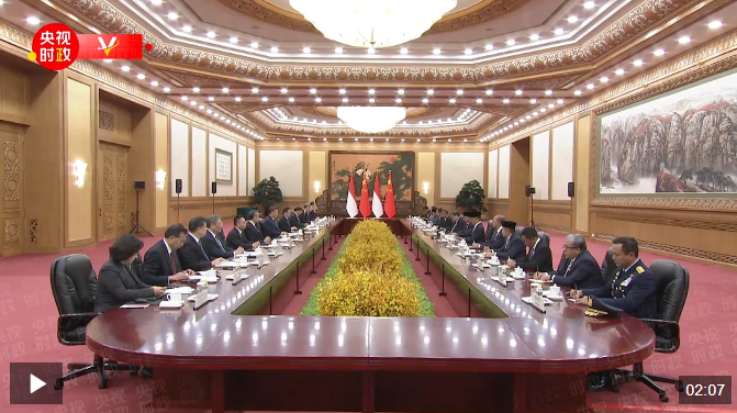 11月9日下午,國(guó)家主席習(xí)近平在北京人民大會(huì)堂同來(lái)華進(jìn)行國(guó)事訪(fǎng)問(wèn)的印度尼西亞總統(tǒng)普拉博沃舉行會(huì)談。