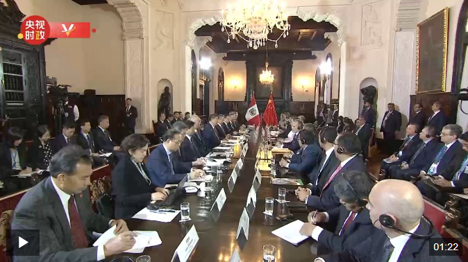 當(dāng)?shù)貢r間11月14日下午,國家主席習(xí)近平在利馬總統(tǒng)府同秘魯總統(tǒng)博魯阿爾特舉行會談。