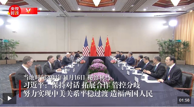 習(xí)近平指出,很高興再次同拜登總統(tǒng)先生見面。過去4年,中美關(guān)系雖然歷經(jīng)跌宕起伏,但在我們兩人領(lǐng)航把舵下,也開展了卓有成效的對話和合作,總體實現(xiàn)了穩(wěn)定。美國剛剛舉行了大選。中方致力于中美關(guān)系穩(wěn)定、健康、可持續(xù)發(fā)展的目標沒有變,按照相互尊重、和平共處、合作共贏處理中美關(guān)系的原則沒有變,堅定維護自身主權(quán)、安全、發(fā)展利益的立場沒有變,賡續(xù)中美人民傳統(tǒng)友誼的愿望沒有變。中方愿同美國政府繼續(xù)保持對話、拓展合作、管控分歧,努力實現(xiàn)中美關(guān)系平穩(wěn)過渡,造福兩國人民。