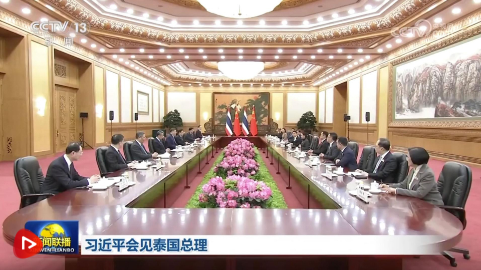 習(xí)近平強(qiáng)調(diào),面對百年未有之大變局,中泰雙方要鞏固戰(zhàn)略互信,堅定相互支持,以中泰關(guān)系的穩(wěn)定性和確定性應(yīng)對外部環(huán)境的不確定性。中方愿同泰方對接發(fā)展戰(zhàn)略,拓展互利合作,實(shí)施好中泰鐵路等旗艦項目,推動中老泰聯(lián)通發(fā)展構(gòu)想早日取得更多成果。深化數(shù)字經(jīng)濟(jì)、新能源汽車等新興領(lǐng)域合作,攜手打造更加穩(wěn)定暢通的產(chǎn)業(yè)鏈供應(yīng)鏈。中方贊賞泰方采取有力措施打擊網(wǎng)賭電詐,雙方要繼續(xù)加強(qiáng)執(zhí)法安全和司法合作,維護(hù)人民生命財產(chǎn)安全,維護(hù)地區(qū)國家交往合作秩序。要深化相知相親,共同舉辦豐富多彩的建交50周年慶;顒,打造更多暖人心、惠民生工程,讓中泰友好深入人心、世代相傳。中方支持泰國擔(dān)任瀾湄合作共同主席,祝賀泰國成為金磚伙伴國,愿同泰方密切溝通協(xié)作,堅定捍衛(wèi)以聯(lián)合國為核心的國際體系和以國際法為基礎(chǔ)的國際秩序,增進(jìn)全球南方團(tuán)結(jié)合作,維護(hù)世界和平,促進(jìn)共同發(fā)展。