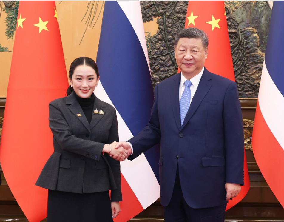 2月6日上午,國家主席習(xí)近平在北京人民大會堂會見來華進(jìn)行正式訪問的泰國總理佩通坦。