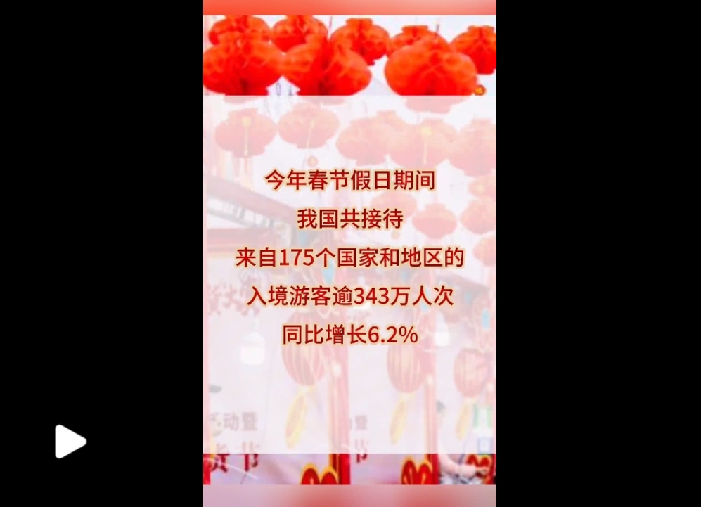 首個(gè)“非遺版”春節(jié),普天同慶,五洲同春。“來華體驗(yàn)中國年”,是其中一道動(dòng)人的風(fēng)景。中國的高鐵上、景區(qū)里,時(shí)?梢娡鈬慰偷纳碛啊(shù)據(jù)顯示,今年春節(jié)假日期間,我國共接待來自175個(gè)國家和地區(qū)的入境游客逾343萬人次,同比增長(zhǎng)6.2%。qnh安康新聞網(wǎng)