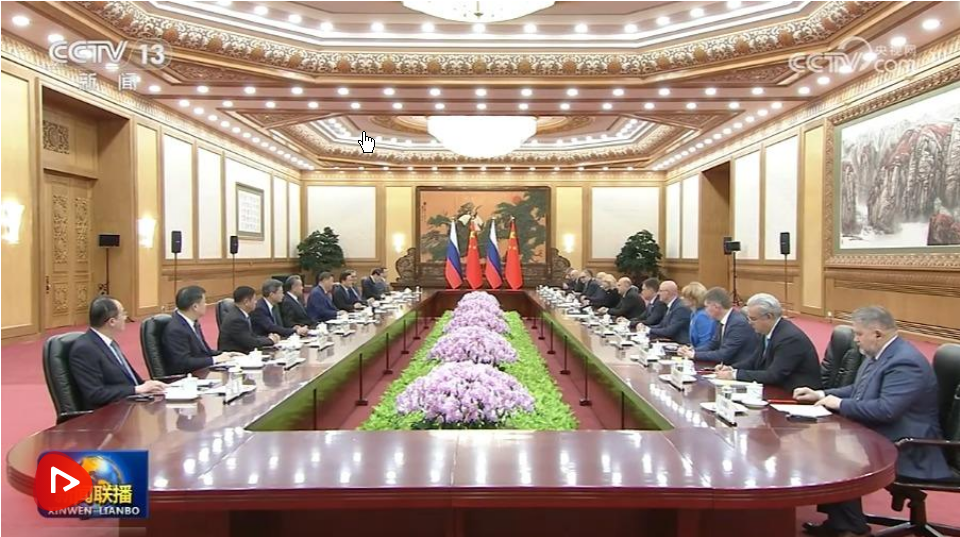 習(xí)近平指出,今年以來,中俄關(guān)系錨定更高水平、更高質(zhì)量發(fā)展目標(biāo),在風(fēng)高浪急的外部環(huán)境中篤定前行。維護(hù)好、鞏固好、發(fā)展好中俄關(guān)系,是雙方的戰(zhàn)略抉擇。我同普京總統(tǒng)在莫斯科和北京兩次會晤,就中俄關(guān)系中的戰(zhàn)略性、全局性問題深入交流,作出新的謀劃和部署。雙方要保持密切協(xié)調(diào),落實(shí)好我同普京總統(tǒng)達(dá)成的重要共識,著眼兩國和兩國人民的根本利益,把中俄合作的蛋糕做好,也為世界和平與發(fā)展作出新的更大貢獻(xiàn)。