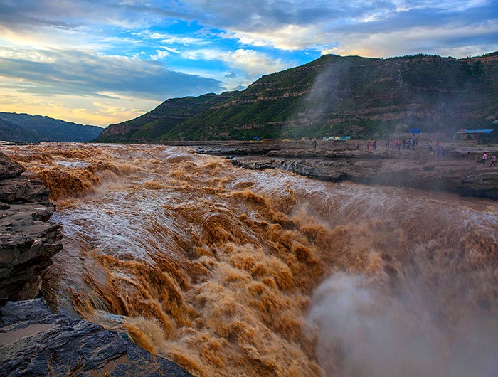 延安壺口瀑布進汛期 主副瀑布連一線