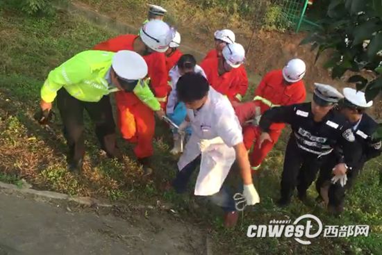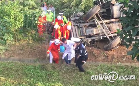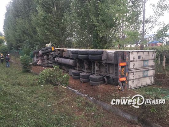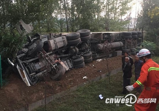 今天(9月13日)5時52分,一輛拉運大蒜的河南牌照半掛車在西寶高速距眉縣服務區(qū)兩公里處沖下護欄側翻,車上2人被困,寶雞公安消防支隊眉縣中隊接到報警后將被困人員救出送往醫(yī)院救治。