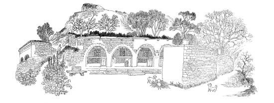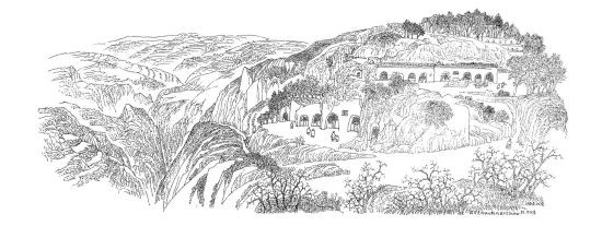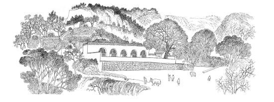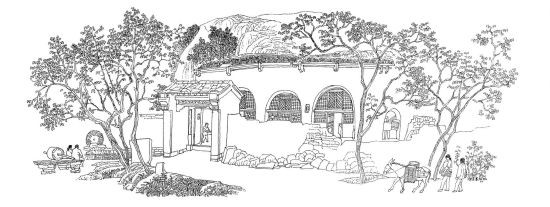 陜北革命舊址寫生,面對復(fù)雜的景物,須瞬間分析,即刻做出判斷、選擇、取舍、構(gòu)圖,抓住整體、突出特點,果斷下筆。以線寫生,務(wù)求準確,落筆后,線不可重復(fù),也無法修改。寫生時,常常左手打傘,天熱時遮陽光,每當(dāng)大汗淋漓,也顧不上擦;下雨時,盡量用傘遮住畫紙,堅持畫完,即便衣服濕透也無所謂。如果對寫生作品不滿意時,就重新赴舊址寫生,僅涇陽縣云陽革命舊址,他就去過4次,清澗縣石嘴驛去了3次,直到畫好為止。