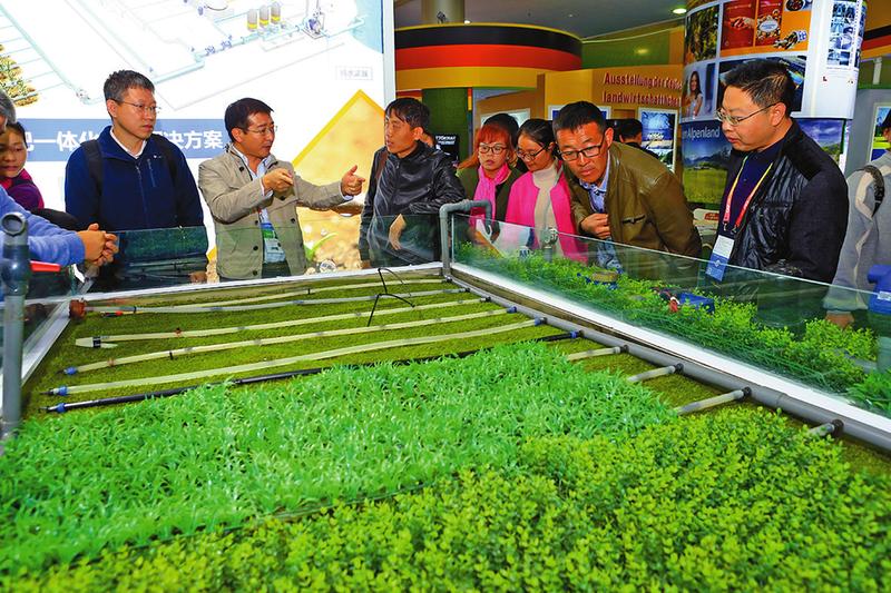 11月5日,在第24屆農(nóng)高會A館,參會者正在了解微灌、滴灌節(jié)能用水系統(tǒng)。 本報記者 安濤 劉強攝