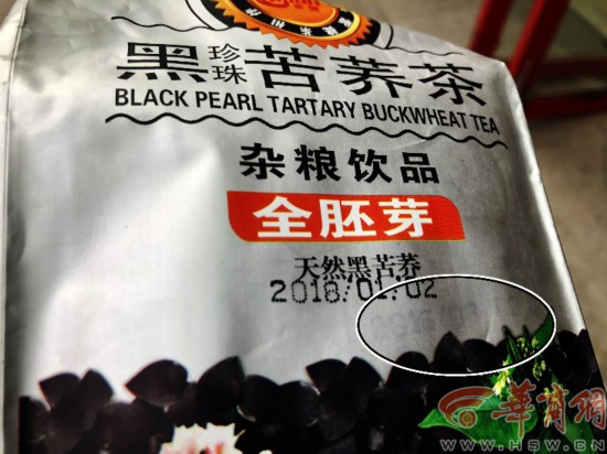 4月7日中午1點(diǎn)多,賀先生和友人一起在西影路華潤(rùn)萬家超市閑逛時(shí),購(gòu)買了一些苦蕎茶,但賀先生卻發(fā)現(xiàn)了這些苦蕎茶包裝袋子上的異樣。
