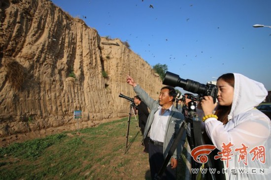 當(dāng)?shù)鼐用駝⑸n峰是一名攝影愛(ài)好者。今年4月,他從朋友圈得知石川河南岸有崖沙燕!爱(dāng)時(shí)我就和幾個(gè)攝友一起來(lái)看,并決定邀請(qǐng)更多的攝影愛(ài)好者一起來(lái)拍攝!彼f(shuō),從4月至今,他們已經(jīng)多次到這里拍攝。