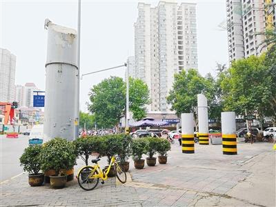 附近一家商鋪老板告訴記者,東北角和西北角兩處的橋墩是天橋拆除后遺留下來的,當時其他位置的橋墩有的在馬路中間,有的就位于地鐵施工區(qū)域,因此就與橋體一起拆除掉了。為何只有這6個橋墩被遺留下來,其作用何在,大家都不清楚。