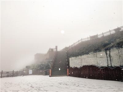 據(jù)太白山天下索道工作人員湯敏介紹,當(dāng)日1時(shí)20分,在海拔3511米的天圓地方景點(diǎn)就開始有雨夾雪出現(xiàn)。到了13時(shí)左右降雪強(qiáng)度逐漸增大,整個(gè)太白山頂霎時(shí)銀裝素裹、分外妖嬈。而到當(dāng)日15時(shí),天圓地方景點(diǎn)地面上的積雪已達(dá)3–4厘米。