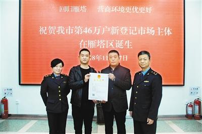 西安市工商局雁塔分局向新登記的第46萬戶市場主體頒發(fā)營業(yè)執(zhí)照