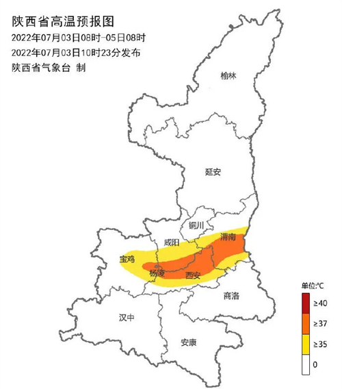 7日:全省多云間晴天。陜北部分地方、關(guān)中盆地大部分地方、陜南漢江沿線有35-37℃的高溫天氣,榆林西部、關(guān)中部分地方38-40℃、局地可達(dá)41-43℃以上。