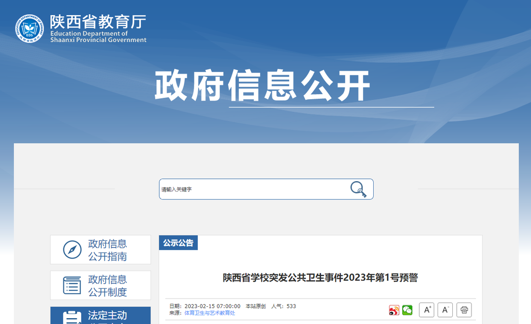 新冠感染:監(jiān)測(cè)數(shù)據(jù)及專(zhuān)項(xiàng)調(diào)查數(shù)據(jù)顯示,陜西省城市和農(nóng)村均已過(guò)新冠感染高峰,已到流行末期,但隨著新型變異毒株的出現(xiàn)及出入境人員的增加,各級(jí)各類(lèi)學(xué)校仍需做好防控工作。