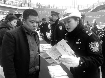 民警上街講解“110”報(bào)警相關(guān)知識(shí) 昨天是全國(guó)第33個(gè)“110宣傳日”,西安警方舉行主題宣傳活動(dòng),引來(lái)不少市民圍觀。 “師傅,現(xiàn)在假定你回到家后發(fā)現(xiàn)家里進(jìn)來(lái)小……