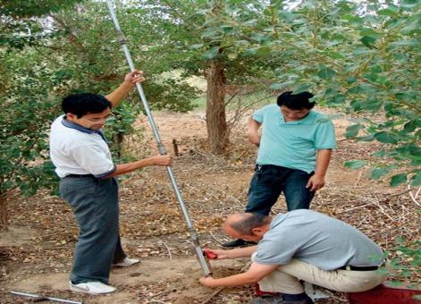 邵明安(左)在甘肅臨澤開展野外調(diào)查時打土鉆 西北農(nóng)林科技大學供圖 他生長在南方的魚米之鄉(xiāng),卻在西北旱塬默默耕耘了36年。為研究水分在干旱半干旱土壤中的運……