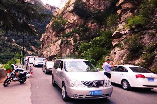 高溫天進山避暑人太多,車流量飽和,交警力保暢通