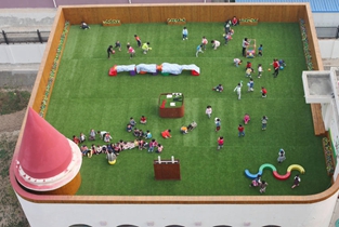 2015年10月20日,陜西省西安市西影路一幼兒園的小朋友們?cè)谖蓓敳賵龃蚯颍,做游戲,捉迷?amp;hellip;… 玩夠了,跳累了,躺在屋頂曬太陽。漂亮安全的屋……