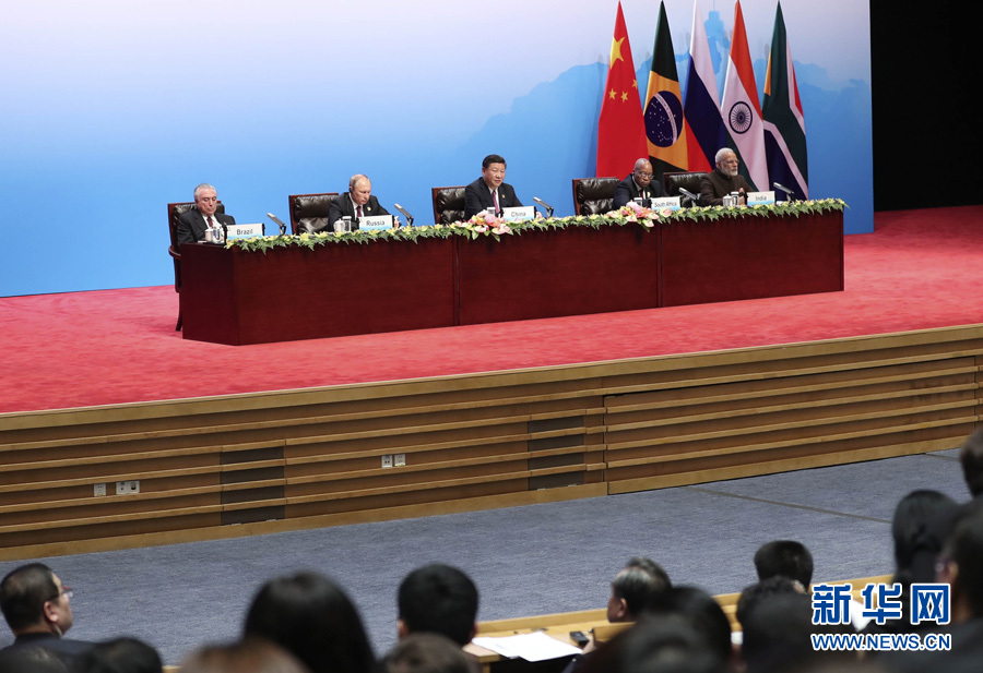 9月4日,國家主席習近平在廈門出席金磚國家領(lǐng)導(dǎo)人同工商理事會對話會并發(fā)表講話,巴西總統(tǒng)特梅爾、俄羅斯總統(tǒng)普京、印度總理莫迪、南非總統(tǒng)祖馬共同出席。新華社記者 丁林 攝2ga安康新聞網(wǎng)