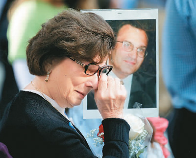 9月11日,美國紐約舉辦活動紀念“9·11”恐怖襲擊事件16周年。 圖為一名手持遇難者照片的女子。dtS安康新聞網(wǎng)