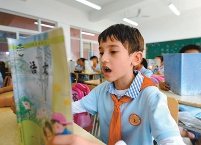 圖為9月13日,在安徽省合肥市蚌埠路第二小學(xué),德國(guó)籍小學(xué)生正在用普通話(huà)朗讀課文。VuX安康新聞網(wǎng)