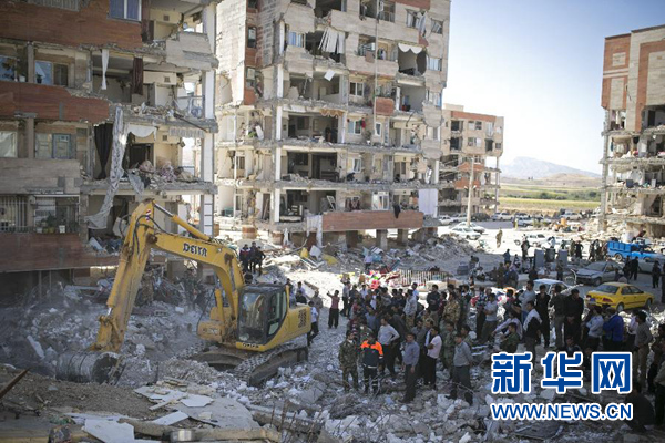 前往災(zāi)區(qū)視察的伊朗現(xiàn)任總統(tǒng)哈!敼幔保慈粘兄Z,將徹查保障房項(xiàng)目緣何不抗震,并對(duì)罪魁禍?zhǔn)讎?yán)懲不貸。