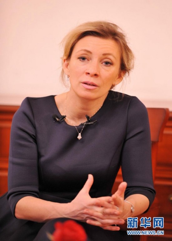 俄羅斯外交部新聞司司長、新聞發(fā)言人扎哈羅娃接受采訪。新華網(wǎng)發(fā) 徐昕攝