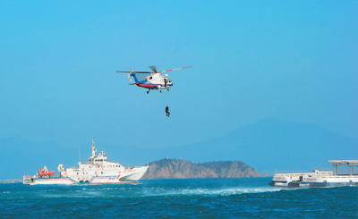 12月19日,海南海事局和南海救助局、南海第一救助飛行隊(duì)在海南三亞以南附近海域開(kāi)展首次?章(lián)合巡航。此次巡航旨在整合海事巡航執(zhí)法力量和專業(yè)救助力量,提升專業(yè)救助飛行力量使用效能和海事巡航執(zhí)法現(xiàn)代化水平。圖為參加聯(lián)合巡航的直升機(jī)進(jìn)行救援演練。YFr安康新聞網(wǎng)