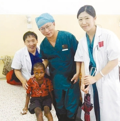 楊鐵軍這次到達幾內(nèi)亞后實施手術的第一例患者是一名6歲兒童。這位兒童遭遇了車禍,傷勢嚴重,右上肢和下肢都有骨折、右股骨粉碎性骨折。小患者已經(jīng)住了很久醫(yī)院,但是當?shù)卮蠓虿恢廊绾谓o這個孩子治療,只能暫時用石膏固定病肢。在楊大夫給小患者成功手術后僅兩周,小患者右上肢石膏已拆除,活動自如。孩子父母對中國醫(yī)療隊的感激溢于言表,孩子天真稚氣的小臉上又重現(xiàn)了往日的歡樂笑容。