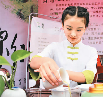 | 				 茶藝師表演桃源紅茶的沖泡技藝。  |
