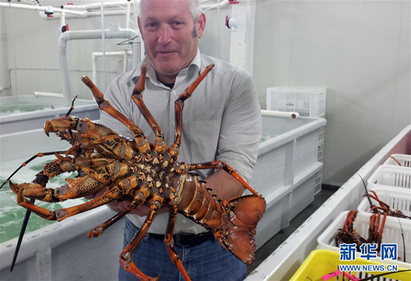 這張未注明拍攝時(shí)間的照片顯示,新西蘭峽灣龍蝦有限公司北島負(fù)責(zé)人艾倫·科斯格羅夫在奧克蘭出口工廠展示一只野生巖龍蝦。 新西蘭最大龍蝦出口商——峽灣龍蝦有限公司集團(tuán)總經(jīng)理安德魯·哈維日前在接受新華社記者采訪時(shí)說(shuō),2019年公司將積極開(kāi)拓中國(guó)的線上渠道,更直接地面對(duì)中國(guó)消費(fèi)者。龍蝦出口是新西蘭的支柱產(chǎn)業(yè)之一,中國(guó)是新西蘭最大的龍蝦出口市常統(tǒng)計(jì)數(shù)據(jù)顯示,新西蘭對(duì)中國(guó)的海鮮出口每年達(dá)5億新西蘭元(約合23億元人民幣),其中約3億新西蘭元(約合13.9億元人民幣)來(lái)自龍蝦產(chǎn)業(yè)。 新華社發(fā)