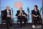 莫里斯·格林伯格先生(中)與中國(guó)駐紐約總領(lǐng)事章啟月大使(右)和耶魯大學(xué)校長(zhǎng)彼得·沙洛維(左)就中美關(guān)系進(jìn)行對(duì)話。(圖片由主辦方提供) ……