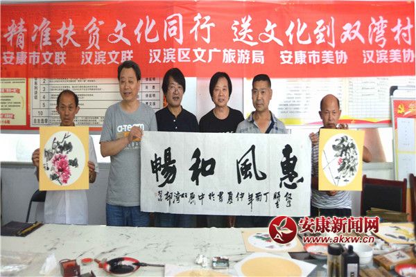 送文化活動受到了雙灣村村民和兒童熱烈歡迎,當(dāng)畫家們把現(xiàn)場創(chuàng)作的繪畫書法送給村民和孩子,村委會主任激動地說歡迎你們來雙灣送文化,精準(zhǔn)扶貧為我們服務(wù)。CD8安康新聞網(wǎng)