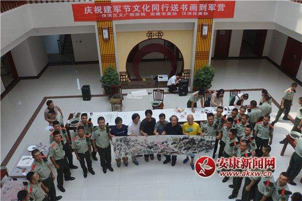 據(jù)了解,本次慶祝八•一建軍節(jié),漢濱區(qū)文廣旅游局、市、區(qū)美術家協(xié)會送書畫到軍營活動走進武警安康支隊,旨在在建軍90周年到來之際,以送書畫的方式,慰問廣大一線武警官兵。進一步增進軍民魚水情誼,豐富軍營文化生活。