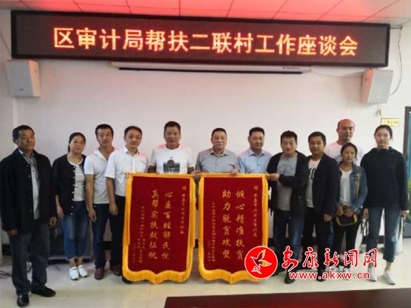 安康新聞網(wǎng)訊(通訊員 陳澤榮)9月14日上午,區(qū)審計(jì)局迎來(lái)了一批特殊的客人——漢濱區(qū)大竹園鎮(zhèn)人大主席余尚坤、二聯(lián)村“兩委”班子主要負(fù)責(zé)人和部分村民代表,他們冒雨前行,代表村委會(huì)和當(dāng)?shù)刎毨罕姡蛠?lái)了兩面印有“傾心精準(zhǔn)扶貧 助力脫貧攻堅(jiān)”和“心系百姓解民憂(yōu) 真幫實(shí)扶鼓征帆”的錦旗,衷心感謝區(qū)審計(jì)局3年來(lái)在精準(zhǔn)扶貧工作中對(duì)二聯(lián)村和二聯(lián)村全體貧困戶(hù)的大力幫扶。