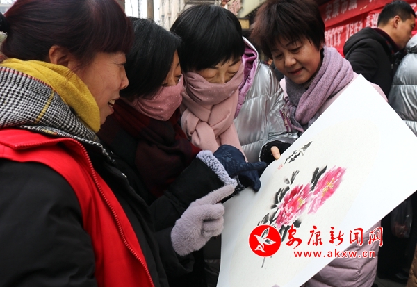 “很高興到鼓樓社區(qū)寫春聯(lián)、送祝福。”張思成點贊鼓樓社區(qū)充滿愛心、重視文化,提供很好的平臺讓書法家和居民一起交流學(xué)習(xí),營造濃濃的春節(jié)民俗氛圍。現(xiàn)場不僅有著名的書法家,著名的畫家也為活動增添色彩,“寒香臘梅”圖、“花開富貴”圖、“事事如意”圖、“節(jié)節(jié)高升”圖等顏色艷麗、生動活潑,美好的寓意是送給居民最溫暖的祝福。