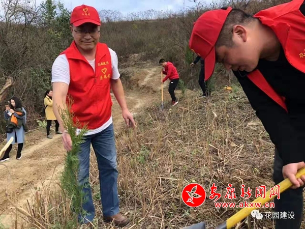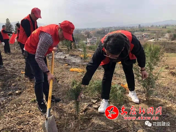 植樹現(xiàn)場熱鬧非凡,花園建司的志愿者們踩著泥濘迅速行動。他們分工協(xié)作,扛苗散苗、揮楸挖坑、扶苗填土等各個環(huán)節(jié)都精心對待,栽得認(rèn)真,干得賣力,一陣忙碌之后,100余株新苗笑立在三月和煦的春風(fēng)里,昔日荒涼的空山坡上又多添了一片綠色。4eS安康新聞網(wǎng)
