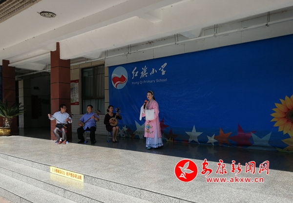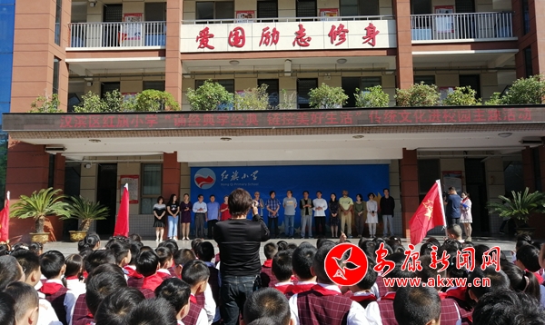活動中,紅旗小學(xué)全體學(xué)生在老師的帶領(lǐng)下誦讀了《論語》片段,深切感受了國學(xué)經(jīng)典的無窮魅力;區(qū)文旅廣電局退休干部為師生講述并普及了國家級非物質(zhì)文化遺產(chǎn)—安康漢調(diào)二黃知識,漢濱區(qū)非遺傳承人為大家現(xiàn)場演繹了漢調(diào)二黃的精彩片段;區(qū)美協(xié)的老師們在現(xiàn)場精心指導(dǎo)美術(shù)小愛好者們即興作畫40余副,并揮毫潑墨做創(chuàng)作示范;區(qū)少兒圖書館為學(xué)校贈送了《詩經(jīng)》《論語》等各類經(jīng)典傳統(tǒng)文化書籍200余冊,并在現(xiàn)場開展流動圖書閱讀推廣活動。