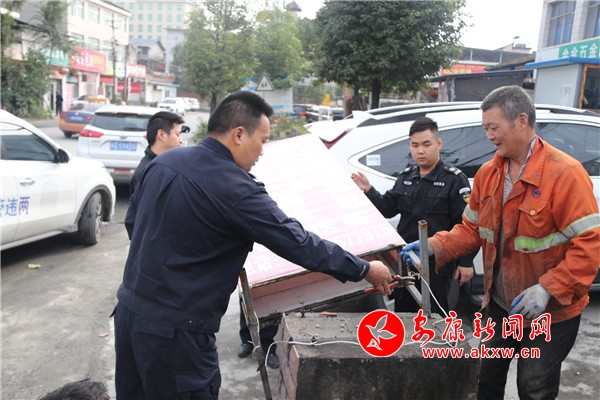 整治行動中,整治組采取宣傳教育與現(xiàn)場取締結(jié)合的方式,挨家挨戶宣傳《中華人民共和國大氣污染防治法》、《安康市漢濱區(qū)人民政府關(guān)于劃定高污染燃料禁燃區(qū)的通告》等相關(guān)條例,督促沿街商鋪業(yè)主限期自行整改到位,執(zhí)法隊員還自備滅火器、剪刀、抹布、鏟刀等工具,對屢教不改使用蜂窩煤爐的頑固商鋪及316國道關(guān)廟鎮(zhèn)轄區(qū)公路沿線各類亂貼亂畫、亂擺亂放的小廣告逐一進行徹底清理。當天共取締蜂窩煤爐8個,清理各類張貼小廣告40余處,拆除亂扯亂掛橫幅15條,沒收亂擺亂放廣告牌30余個。