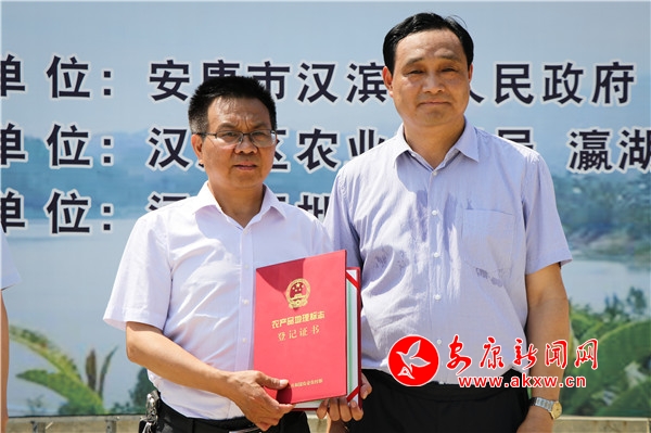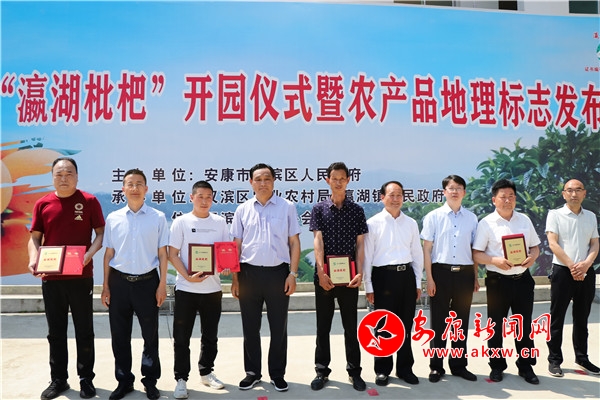 活動現(xiàn)場,陜西省農(nóng)產(chǎn)品質(zhì)量安全中心主任程曉東向漢濱區(qū)蠶茶果技術(shù)中心頒發(fā)了“瀛湖枇杷”農(nóng)產(chǎn)品地理標志證書。省市區(qū)領(lǐng)導向漢濱區(qū)農(nóng)興果業(yè)農(nóng)民專業(yè)合作社、漢濱區(qū)碧玉泉果業(yè)種植農(nóng)民專業(yè)合作社、安康天道酬勤農(nóng)業(yè)綜合開發(fā)有限公司、安康市康軒生態(tài)科技有限責任公司等首批“瀛湖枇杷”農(nóng)產(chǎn)品地理標志使用者頒發(fā)了準用證書并授牌。