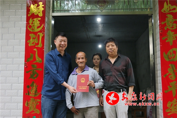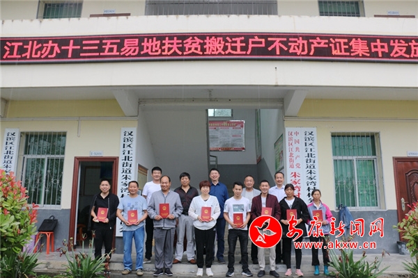 當(dāng)天,江北街道辦事處工作人員為12戶十三五易地扶貧搬遷貧困戶送去一份大禮——新家的不動(dòng)產(chǎn)權(quán)證書(shū),自此這12棟房屋有了“身份證”。
