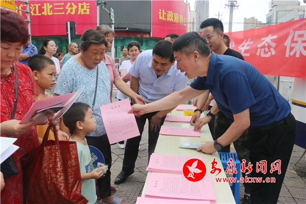 本網(wǎng)訊(通訊員 宋玉鳳)7月22日上午,江北街道辦事處主任帶領(lǐng)辦環(huán)保所、張溝橋社區(qū)工作人員走上街頭,深入開展秦嶺生態(tài)環(huán)境保護(hù)宣傳教育活動。