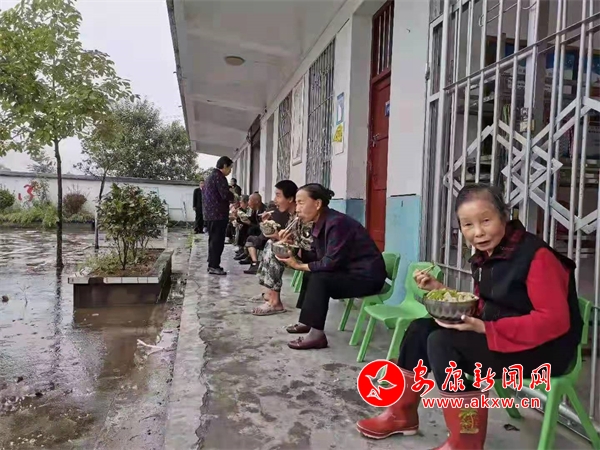 8月29日中午,關(guān)廟鎮(zhèn)唐淌小學(xué)避災(zāi)安置點(diǎn)內(nèi)飄來陣陣香味,原來是鎮(zhèn)村干部、民兵連長正為轉(zhuǎn)移安置群眾燒菜。只見他們洗菜、切菜、翻炒,不一會(huì)兒,一道道色香味俱全的飯菜上桌了,老人們圍坐在一起,吃了一頓熱騰騰的午飯。“粉條炒肉、紅燒茄子、酸蘿卜炒魔芋、家常豆腐還有西紅柿雞蛋湯,這菜比我家里吃得都好。”唐淌村三組村民唐德枝笑著說道。