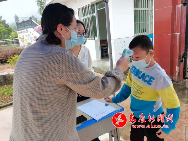 9月1日,在漢濱區(qū)流水鎮(zhèn)學坊埡小學校門口,一個個佩戴好口罩的小學生和幼兒園小朋友經(jīng)過消毒區(qū)、測溫區(qū)和實名登記進入校園,開始了新學期的第一天。(記者 毛明星)qxY安康新聞網(wǎng)