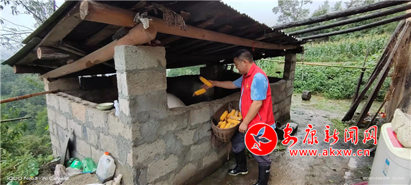 第二天一早,剛剛從防汛重點(diǎn)警示區(qū)完成排查的朱文杰一邊喊著“柯亮,騎上摩托,我們?nèi)ソo唐第禮把豬和雞喂了”,一邊換下早已被雨水打濕的外套,披上一件志愿服背心,勉強(qiáng)抵御陣陣襲來(lái)的涼意,撐上那把“外面下暴雨,里面下小雨”的大紅傘,匆匆趕去兌現(xiàn)當(dāng)“飼養(yǎng)員”的承諾。