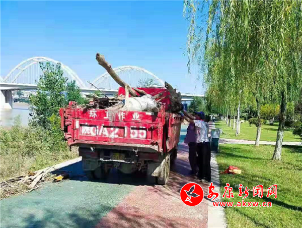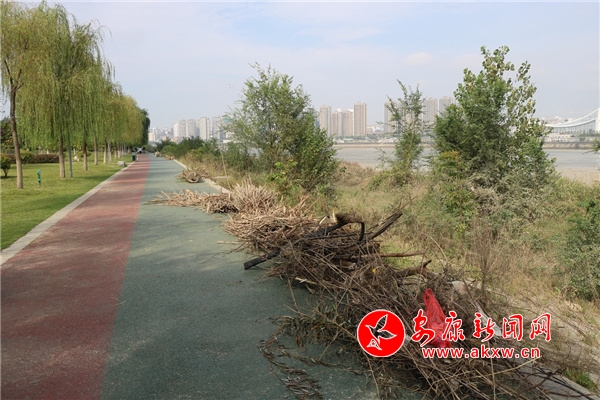 行動(dòng)中,護(hù)河員和專(zhuān)業(yè)施工隊(duì)員密切配合,對(duì)漢江南岸金川段、心石段、油坊段、白廟段河道護(hù)坡及岸邊的雜樹(shù)木進(jìn)行拉網(wǎng)式清理整治,工人們利用電鋸、刀等工具,將粗大雜樹(shù)木進(jìn)行切割規(guī)整,連同細(xì)小樹(shù)枝雜草一道搬至步道,然后用車(chē)統(tǒng)一運(yùn)走。據(jù)了解,截至9月23日,共清運(yùn)走雜樹(shù)木60余車(chē),讓河岸與周邊的美景更好融為一體。