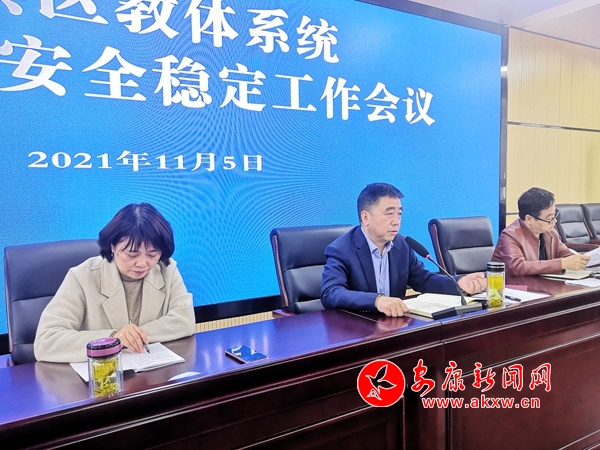 本網(wǎng)訊(通訊員 趙軍)11月5日上午,全省教育系統(tǒng)安全穩(wěn)定工作視頻會(huì)議后,漢濱區(qū)教體局接著召開教體系統(tǒng)冬季校園安全穩(wěn)定工作會(huì)議,結(jié)合實(shí)際貫徹省廳會(huì)議精神,對(duì)全區(qū)教體系統(tǒng)冬季校園安全穩(wěn)定工作進(jìn)行再安排、再動(dòng)員、再夯實(shí),持續(xù)加力加壓,強(qiáng)化工作措施,全力保障冬季校園安全穩(wěn)定。區(qū)教體局科級(jí)領(lǐng)導(dǎo)及股室負(fù)責(zé)人、各鎮(zhèn)辦中心校校長、區(qū)直教育單位相關(guān)負(fù)責(zé)人參加會(huì)議。